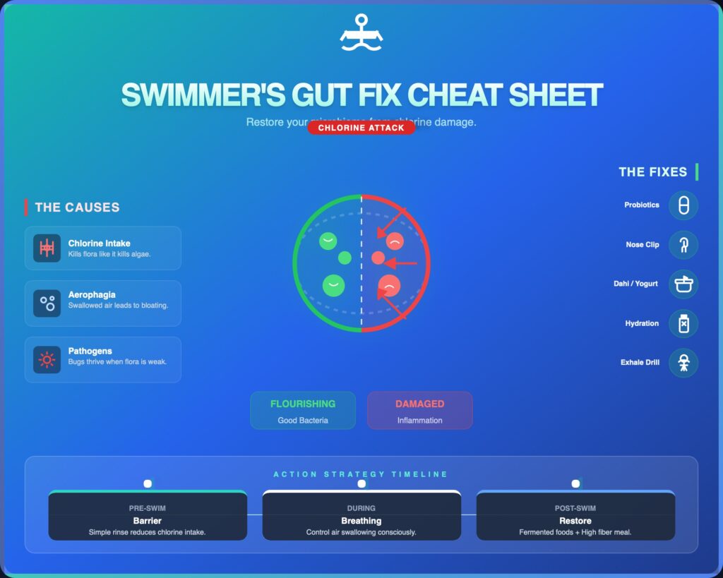 Yaar, swimmer’s gut real problem hai but bilkul fixable. Chlorine germs se bachata hai but microbiome hit karta – probiotics aur habits se balance.